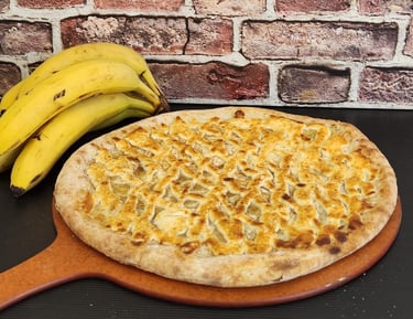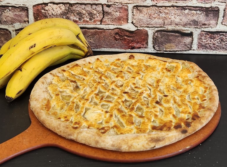 El postre perfecto! Tenemos la mejor pizza dulce de Europa, sabor banana nevada.